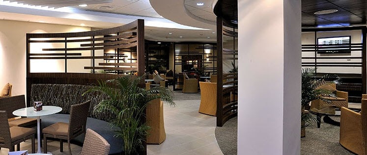 Departure service is also very worthwhile. You go through a separate line for security and it tends to be much shorter than the other security line. Once through, you can make your way to the Club Mobay Departure Lounge and and enjoy some delicious food and beverages. Since you really aren’t getting much (if any) food on planes today, it is nice to be able to eat before boarding. Below is a picture of what my travel buddies were eating and two stock photos of the departure lounge.